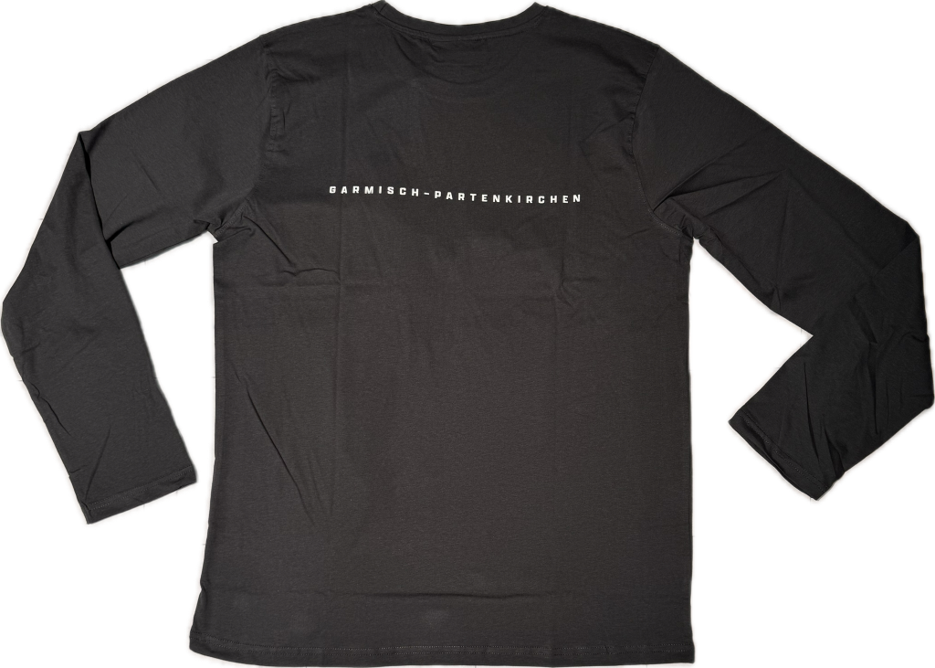 Baumwoll Longsleeve mit Skifahrer-Print und Garmisch-Partenkirchen Schriftzug auf der Rückseite. Dein lässiger Style für den Alltag.